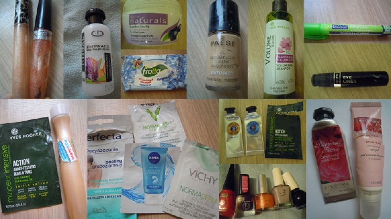 Na początek produkty, których nie udało mi się zużyć. Zabrałam się za porządki w kosmetykach, które zostawiłam w rodzinnym domu, a że rzadko tam bywam nie miałam kiedy ich używać. Prawie wszystkie były już po terminie przydatności tak więc trafiły do kosza: